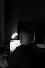 A haunting study of contrast, Everything in Between captures the fragile tension between darkness and light. A lone figure drifts through an undefined space — neither here nor there — suspended between two worlds.